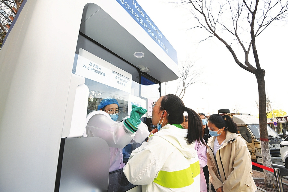 4月5日,太原萬柏林區(qū)麗華苑北門便民核酸檢測點(diǎn),市民有序排隊(duì)登記進(jìn)行核酸檢測。據(jù)了解,近期萬柏林區(qū)新增7處便民核酸檢測點(diǎn),有效提升核酸檢測效率,全方位織密疫情防控網(wǎng)。(記者阮洋攝)