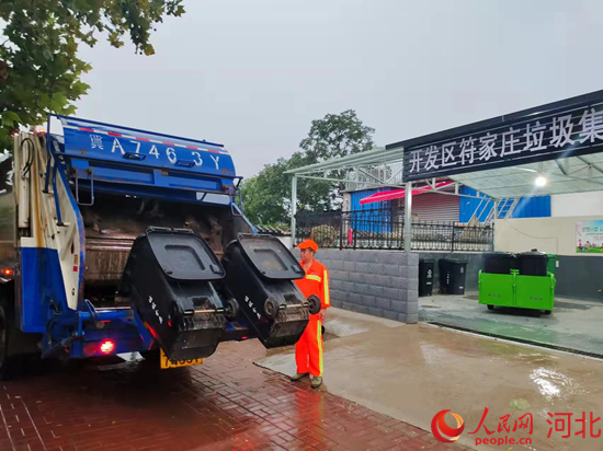 一大清早,在石家莊市鹿泉經(jīng)濟(jì)開(kāi)發(fā)區(qū)符家莊村,保潔員馮琴芳正和同事們一起入戶收集生活垃圾,電動(dòng)收集車上四個(gè)垃圾桶裝滿后,保潔員將垃圾統(tǒng)一運(yùn)送到村里的垃圾集中分類點(diǎn)。