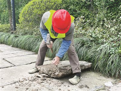 “我們秉持‘最小干預’的原則——結構層穩(wěn)定的老石板,原則上不修;需要修繕的老石板,則嚴格遵守‘修舊如舊、保留肌理’的原則?!焙贾輬@林設計院股份有限公司相關負責人介紹,“一般兩種情況下才進行修復,一是樹池周邊起拱、松動嚴重,二是老石板破損、松動嚴重?!?/p>
