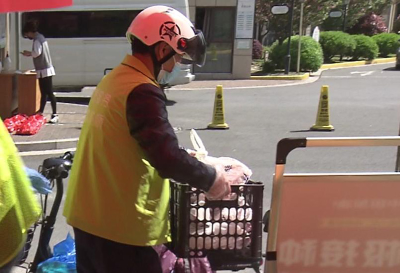 在玉麟名邸小區(qū),前一天晚上居民們通過居委訂購(gòu)的蔬菜和肉類食品今天上午已經(jīng)抵達(dá)各暫存點(diǎn)位,陸續(xù)有居民接到通知前來取貨。除了蔬菜肉類食品,在昨天城橋鎮(zhèn)公布的生活物資保供指南中,還增設(shè)了米、油、調(diào)味料、衛(wèi)生用品等套餐,由各村居根據(jù)各自實(shí)際情況組織集中代購(gòu)和分發(fā)?!靶^(qū)居民錯(cuò)峰分時(shí)領(lǐng)取,開放式的老街小巷,我們安排每戶送上門?!倍帕柙平榻B。
