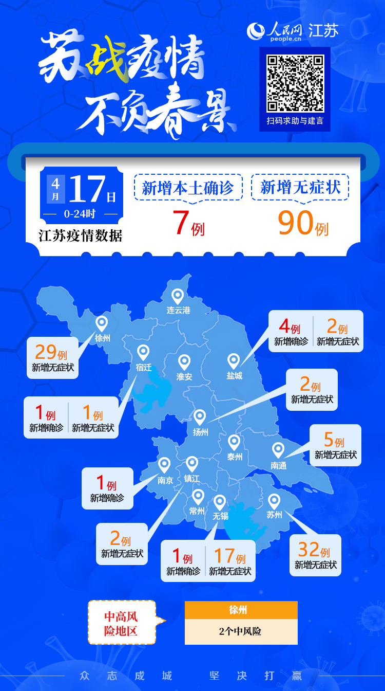 4月17日江蘇新增本土確診病例7例 本土無癥狀感染者90例