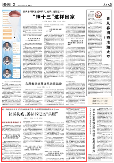 《人民日報(bào)》2022年4月17日2版 版面截圖