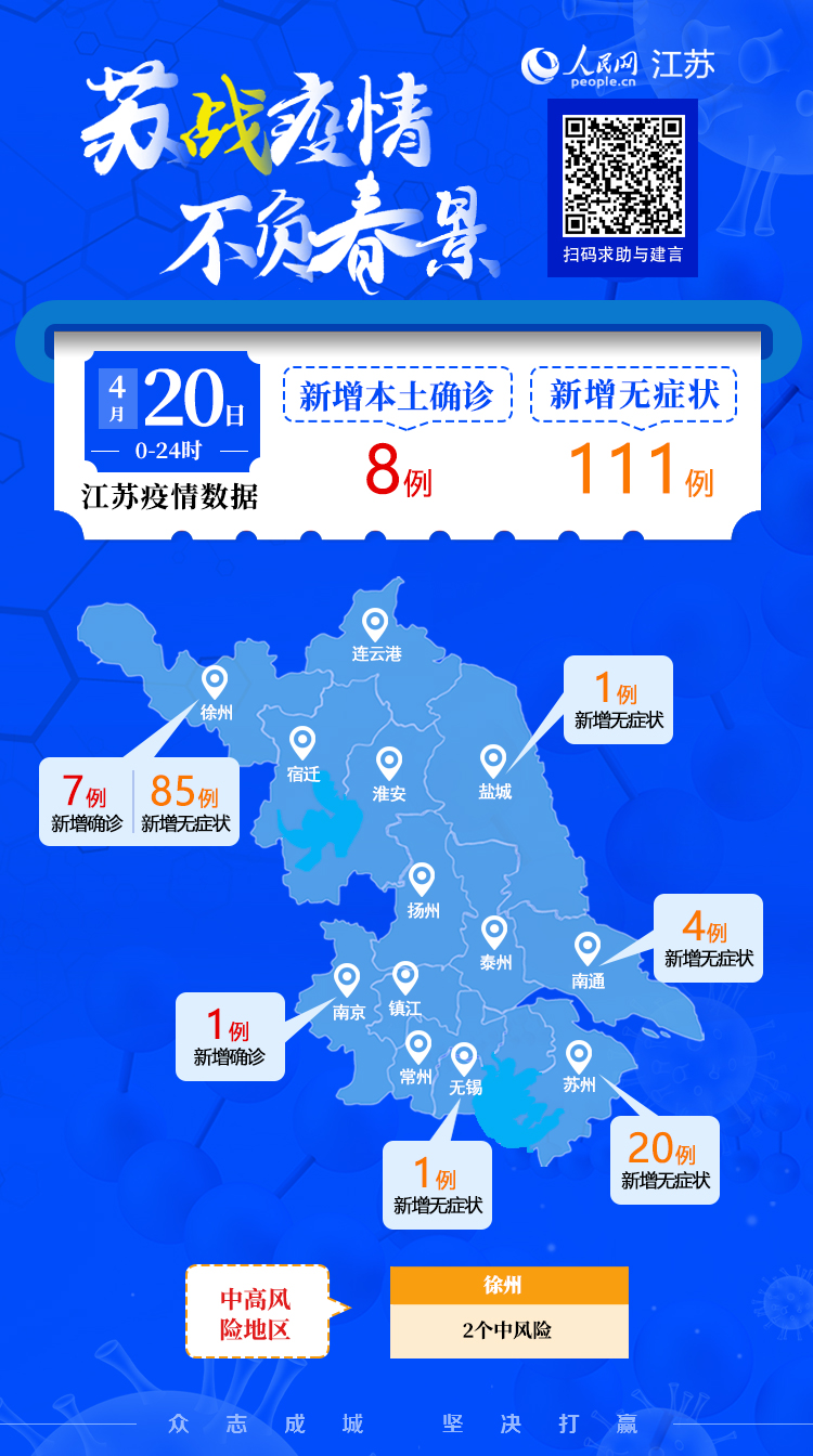 4月20日江蘇新增本土確診病例8例 本土無(wú)癥狀感染者111例