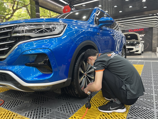 圖為南京市鼓樓區(qū)擬創(chuàng)建的優(yōu)質(zhì)服務洗車場內(nèi),工作人員在給車輛清洗輪轂。曈暚攝