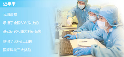 數(shù)據(jù)顯示,近年來,我國高校承擔(dān)了全國60%以上的基礎(chǔ)研究和重大科研任務(wù),獲得了60%以上的國家科技三大獎(jiǎng)勵(lì),為實(shí)現(xiàn)“兩個(gè)一百年”奮斗目標(biāo)貢獻(xiàn)了重要的高校力量。