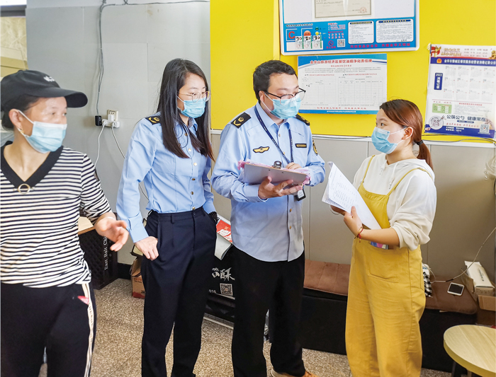 4月26日,金華婺城區(qū)市場監(jiān)管局羅店所工作人員來到轄區(qū)內(nèi)餐飲經(jīng)營戶檢查復(fù)工復(fù)產(chǎn)情況,并提示商戶落實(shí)上級防疫相關(guān)規(guī)定。羅店鎮(zhèn)由管控區(qū)調(diào)整為防范區(qū)后,該所加強(qiáng)對轄區(qū)餐飲經(jīng)營戶的巡查,要求商戶督促顧客掃防疫碼,檢查店內(nèi)食品原料及預(yù)包裝食品的保質(zhì)期、消毒日期,及時清理臨保過保的食品等,實(shí)現(xiàn)轄區(qū)餐飲行業(yè)有序復(fù)工復(fù)產(chǎn)。(吳潮宏)