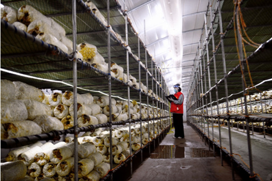 邯鄲市廣平縣十里鋪鎮(zhèn)陳固村農(nóng)事代辦志愿者走進陳固村菌菇大棚,查看菌菇長勢。武小凱攝