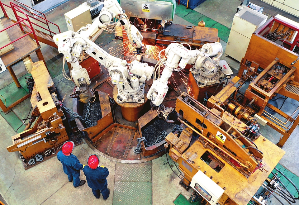 5月5日,在晉能控股裝備制造集團(tuán)華越華茂公司生產(chǎn)車間,國(guó)內(nèi)首套國(guó)產(chǎn)化礦用高強(qiáng)度圓環(huán)鏈全自動(dòng)制鏈機(jī)組正在作業(yè)中。近年來(lái),該公司不斷提升裝備能力,其生產(chǎn)的礦用高強(qiáng)度圓環(huán)鏈、緊湊鏈及各類工業(yè)用鏈條,工藝達(dá)到國(guó)內(nèi)領(lǐng)先水平。(記者劉通攝)
