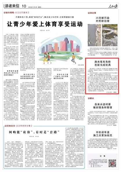 人民日報(bào)刊發(fā)連云港讀者來信:激光筆有危險(xiǎn) 豈能當(dāng)成玩具