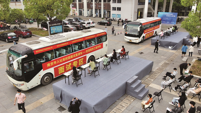 面試大巴進(jìn)高校 南京首次嘗試畢業(yè)生“見(jiàn)面不接觸”求職