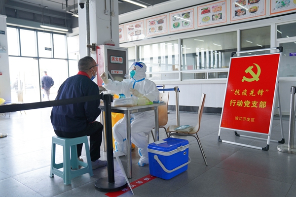 核酸檢測團(tuán)隊走進(jìn)制造業(yè)企業(yè)。濱江開發(fā)區(qū)供圖