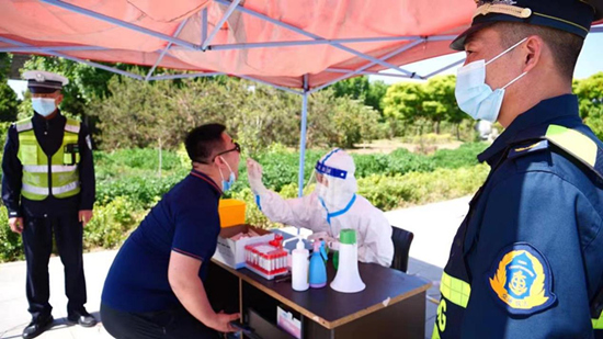 貨車司機(jī)正在服務(wù)區(qū)做核酸檢測(cè)。 河北省交通運(yùn)輸廳供圖