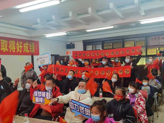 徐夢桃參加的每一場北京冬奧會(huì)比賽,她的啟蒙教練、家鄉(xiāng)人民和小運(yùn)動(dòng)員們都在鞍山市軍事體育學(xué)院為她加油助威。胡婧怡攝