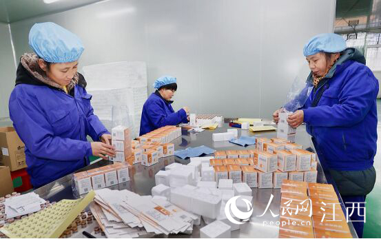 春節(jié)期間,贛江新區(qū)極尊堂中藥制藥有限公司內(nèi),工人們正在進行產(chǎn)品裝箱。贛江新區(qū)供圖