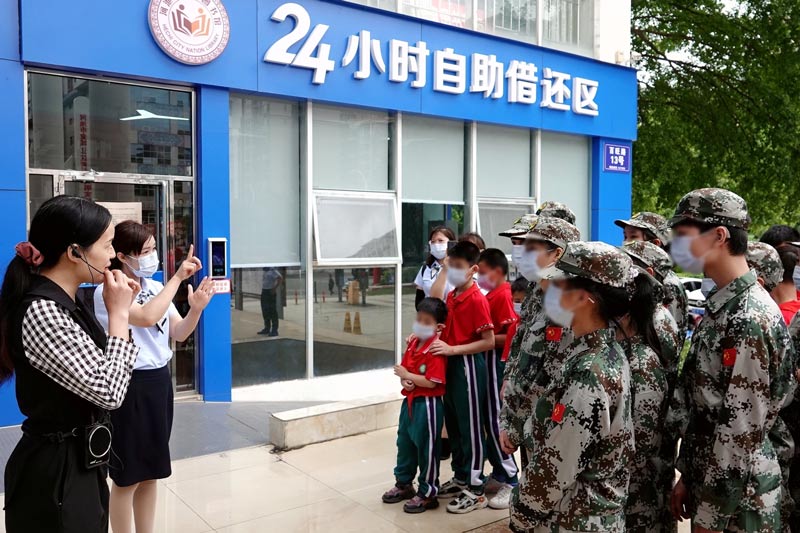 廣西河池市金城江區(qū)特殊教育學(xué)校的孩子們在參觀圖書24小時(shí)自助借還區(qū)。高東風(fēng)攝