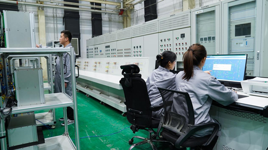 國網(wǎng)河北電科院利用搭建的“雙花瓣”配電網(wǎng)物理平臺,對雄安新區(qū)配電網(wǎng)運行狀況進(jìn)行模擬仿真。 段昕供圖