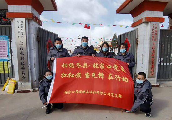 長城液壓油缸有限公司開展“扛紅旗當先鋒”活動,為上營屯村贈送價值1萬余元的生活用品。 萬全區(qū)委組織部供圖