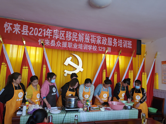 懷來縣眾援職業(yè)培訓學校對新保安鎮(zhèn)解放街村部分婦女進行中式面點專業(yè)培訓。 懷來縣委組織部供圖
