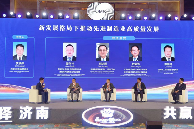 在對話交流階段,費斯托大中華業(yè)務(wù)區(qū)運營副總裁姜作林,凱傲集團董事兼亞太、美洲CEO郭進鵬,松下電器中國東北亞公司副總裁趙炳弟,濟南市工業(yè)和信息化局局長汲佩德、濟南市投資促進局局長李洪偉等,圍繞“新發(fā)展格局下推動先進制造業(yè)高質(zhì)量發(fā)展”展開了對話交流。
