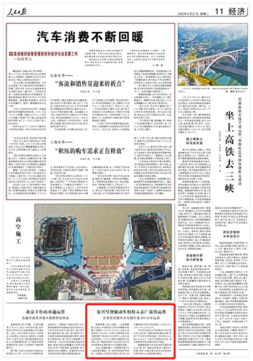 人民日報點贊青島中車四方:智能復興號在京武段開跑時速350公里