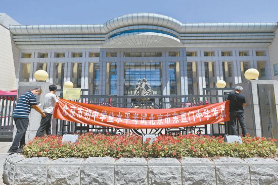 2022年北京中考今天開考,本市18個考區(qū)各類中考考點已全部準(zhǔn)備就緒。昨天,作為中考考點的北京東直門中學(xué)完成布置工作。本報記者 潘之望攝
