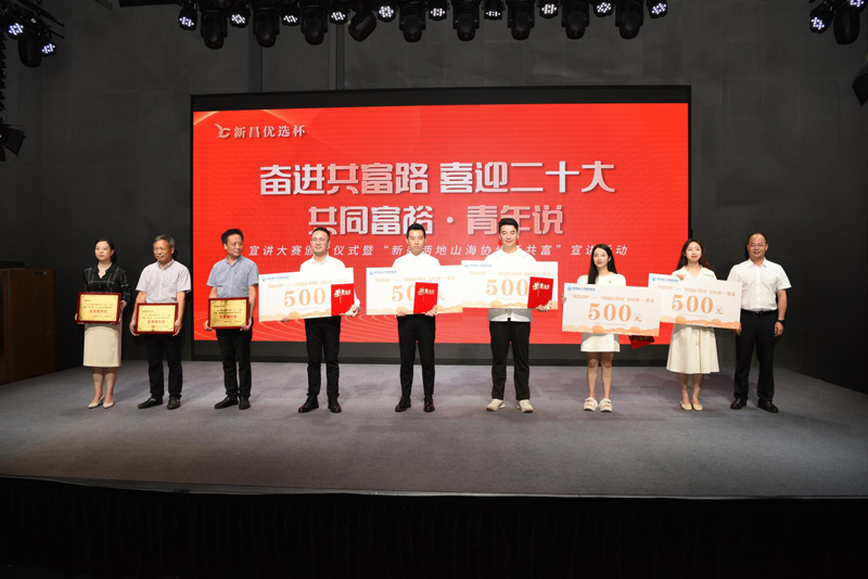 6月22日,“奮進(jìn)共富路 喜迎二十大——共同富?!で嗄暾f(shuō)”宣講大賽頒獎(jiǎng)儀式暨“新衢兩地山海協(xié)作話共富”宣講活動(dòng)在紹興新昌舉行。