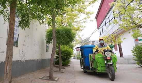 任澤區(qū)小屯村保潔員在收集垃圾。 宋杰攝