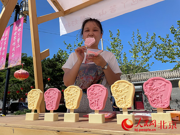 丫髻山桃花扇文創(chuàng)雪糕受到歡迎。人民網 尹星云攝