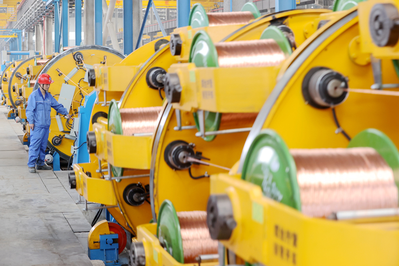 工人在智能化生產(chǎn)車間趕制特種線纜訂單。謝尚國(guó)攝