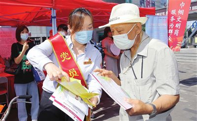 7月13日上午,天津市和平區(qū)濱江道樂(lè)賓百貨門(mén)前,市第十二次黨代會(huì)精神宣講展位彩旗招展,群眾絡(luò)繹不絕。來(lái)自衛(wèi)健、科技、政法、交通、公共服務(wù)、社會(huì)組織等方面50多個(gè)各級(jí)各類(lèi)的為民服務(wù)窗口型“巾幗文明崗”“巾幗建功先進(jìn)集體”志愿者齊聚,以學(xué)習(xí)宣傳貫徹市第十二次黨代會(huì)精神暨“迎盛會(huì)、鑄忠誠(chéng)、強(qiáng)擔(dān)當(dāng)、創(chuàng)業(yè)績(jī)”巾幗文明崗為群眾服務(wù)活動(dòng)為主題,開(kāi)展多項(xiàng)便民服務(wù)。