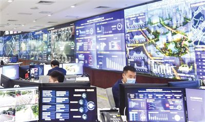 走進這座智慧城市的“中樞”──生態(tài)城“城市大腦”運營中心,只見以深藍為主色調的超大液晶屏鋪滿整面墻,科技感拉滿。屏幕上的數(shù)據(jù)和信息背后,是建設、環(huán)境、醫(yī)療、應急等10多個領域的實時運行情況,涉及30余個系統(tǒng)、400余項指標。工作人員目不轉睛地監(jiān)測、記錄、反饋,在做到心中有“數(shù)”的同時,也將城市管理運營模式從“被動處置”轉為“主動干預”。