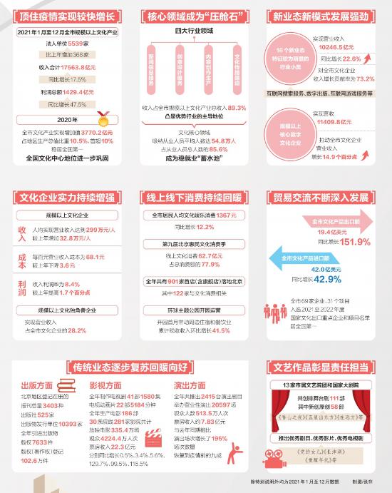 2021年是“十四五”開局之年,北京文化產(chǎn)業(yè)發(fā)展圍繞落實(shí)習(xí)近平總書記關(guān)于文化建設(shè)的重要論述,服務(wù)國家文化發(fā)展戰(zhàn)略,立足推進(jìn)全國文化中心建設(shè),以高質(zhì)量發(fā)展為主線,在疫情防控常態(tài)化形勢下,積極主動應(yīng)變求新、穩(wěn)中求進(jìn),實(shí)現(xiàn)了“十四五”時(shí)期的良好開局。