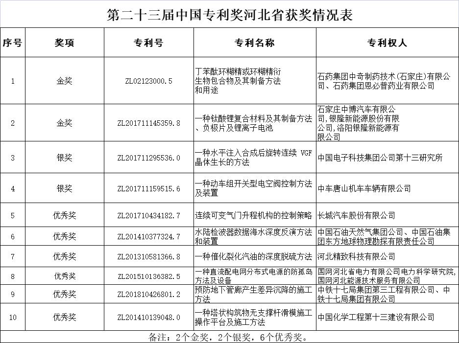 河北十項(xiàng)專(zhuān)利獲中國(guó)專(zhuān)利獎(jiǎng)