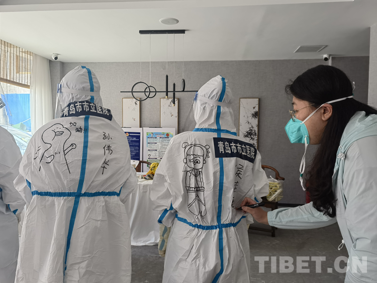 中國西藏網(wǎng)訊 青島援藏醫(yī)療隊自8月17日進(jìn)藏以來, 隊員們無論工作多累多難、高原反應(yīng)有多難受,都沒有一句怨言,依然堅持在西藏自治區(qū)日喀則市戰(zhàn)“疫”一線。工作之余,來自青島市市立醫(yī)院本部ICU的鐘翔宇發(fā)揮出了她的“隱藏技能”——在醫(yī)療隊的“大白”身上畫上漫畫,用表情包背到身上的方式給隊友們加油鼓勁兒。身著漫畫“戰(zhàn)袍”的隊員們斗志昂揚,朝氣蓬勃,互相鼓勵幫助,完成了一天天的工作任務(wù)。而這些古靈精怪的漫畫,在戰(zhàn)“疫”一線也成了一道靚麗的風(fēng)景線。(中國西藏網(wǎng) 記者/次旦拉姆 由桑珠孜區(qū)融媒體中心供稿)