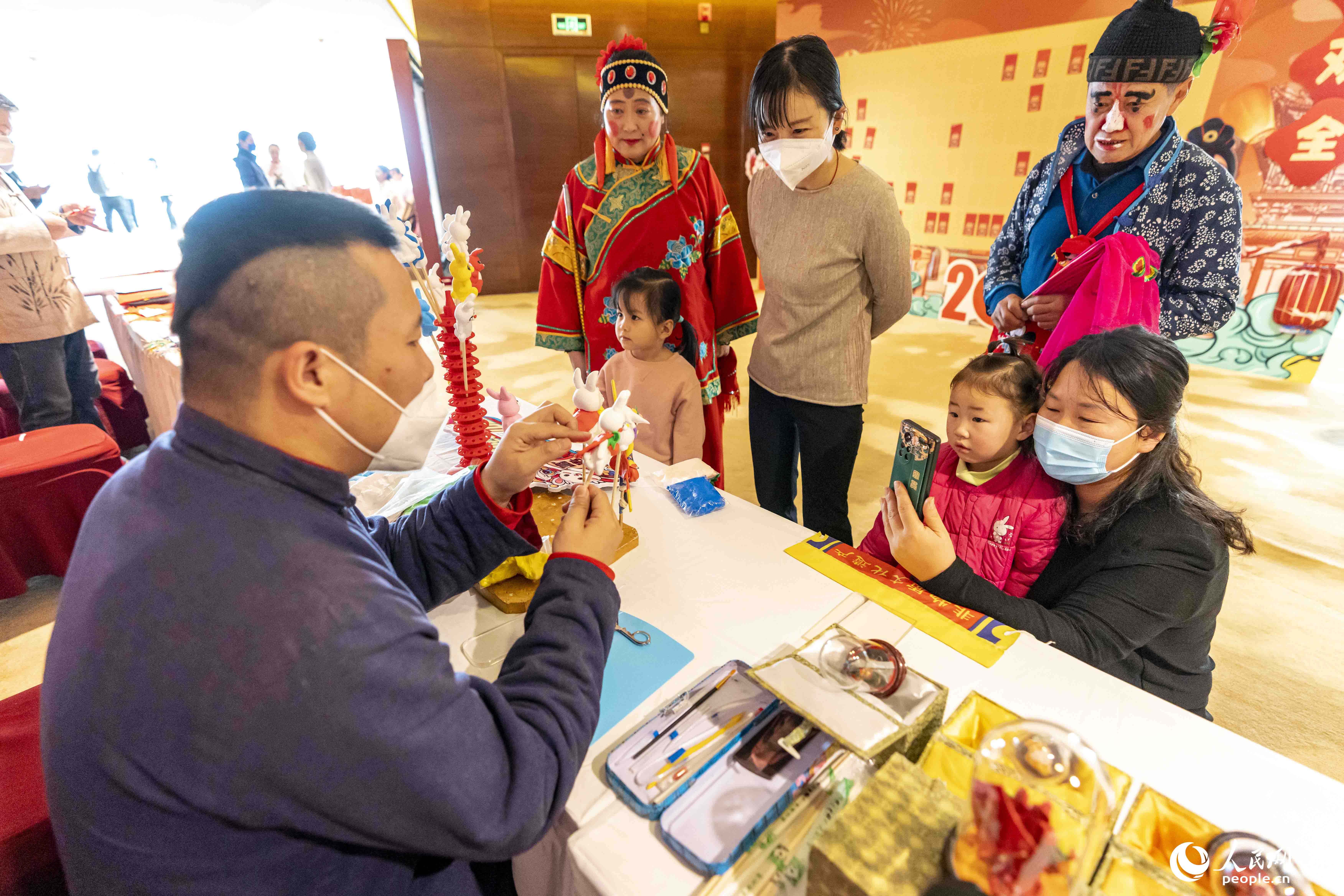 在推介活動(dòng)現(xiàn)場,精心布置了“新春市集”互動(dòng)體驗(yàn)區(qū)、年俗非遺互動(dòng)體驗(yàn)區(qū)、年俗節(jié)目快閃區(qū)等頗具山西特色文化的體驗(yàn)區(qū)域,營造了喜慶、熱烈的春節(jié)氛圍。剪紙、木板年畫、糖畫、面塑等項(xiàng)目,讓現(xiàn)場嘉賓沉浸式體驗(yàn)山西非遺的獨(dú)特魅力。在山西年俗表演快閃區(qū)域,舞獅表演、旱船等山西社火表演,讓濃濃的年味迎面撲來。活動(dòng)中,飽含山西大院文化符號、中國結(jié)等元素,寓意團(tuán)圓美滿的山西文旅兔年IP形象“晉小美”也首次亮相。