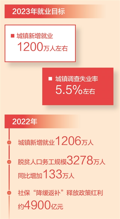 政府工作報告提出今年發(fā)展主要預(yù)期目標中,城鎮(zhèn)新增就業(yè)1200萬人左右,城鎮(zhèn)調(diào)查失業(yè)率5.5%左右。