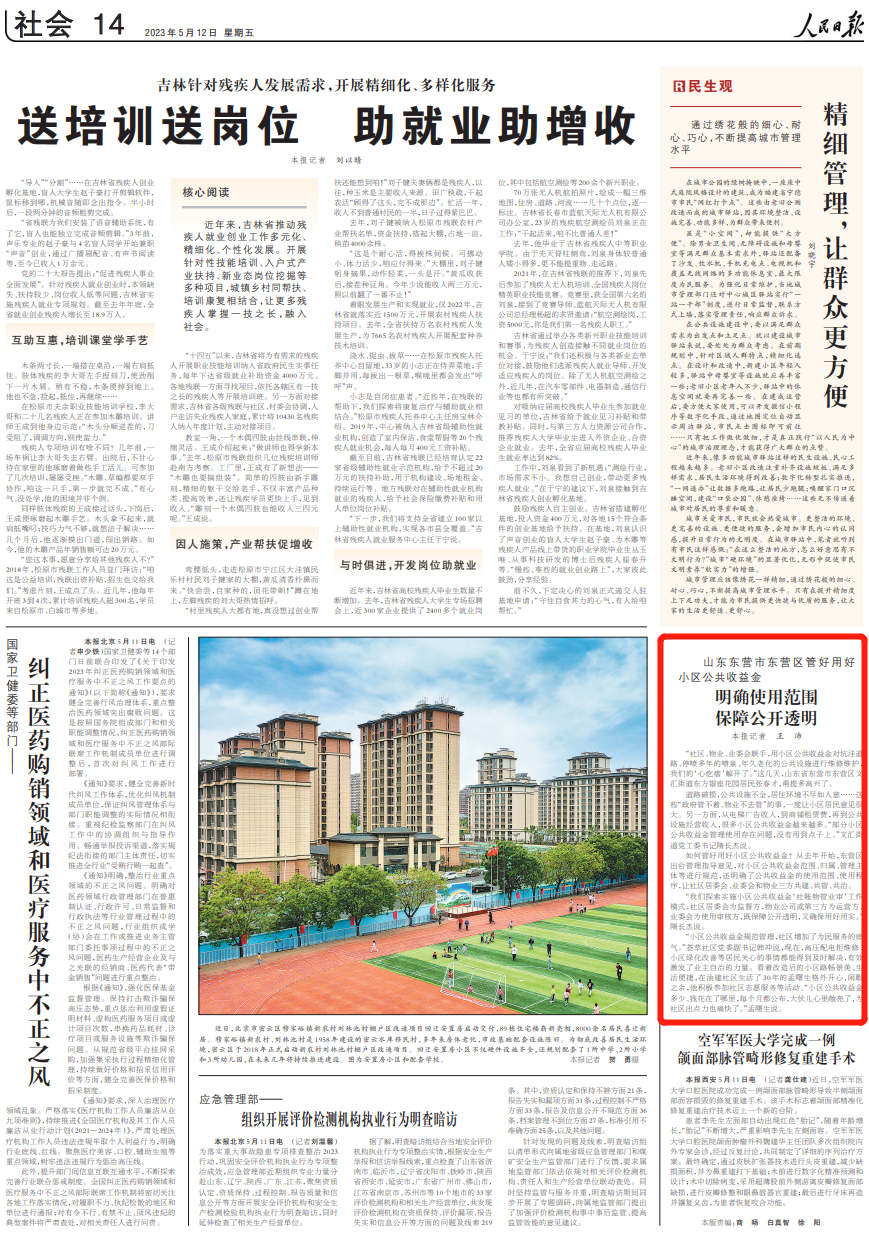 人民日?qǐng)?bào) | 東營(yíng)市東營(yíng)區(qū)管好用好小區(qū)公共收益金