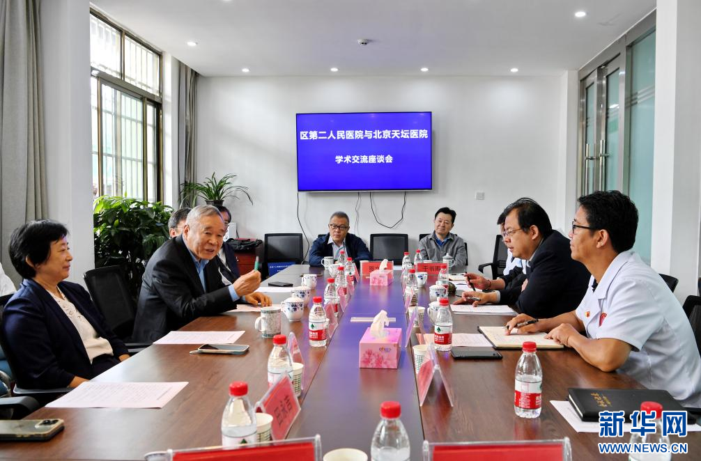 在西藏自治區(qū)第二人民醫(yī)院,趙繼宗院士(左二)與醫(yī)院醫(yī)療工作者交流(8月10日攝)。新華社記者 張汝鋒 攝