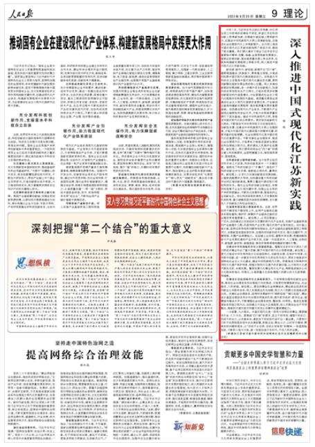 人民日?qǐng)?bào)|深入推進(jìn)中國式現(xiàn)代化江蘇新實(shí)踐