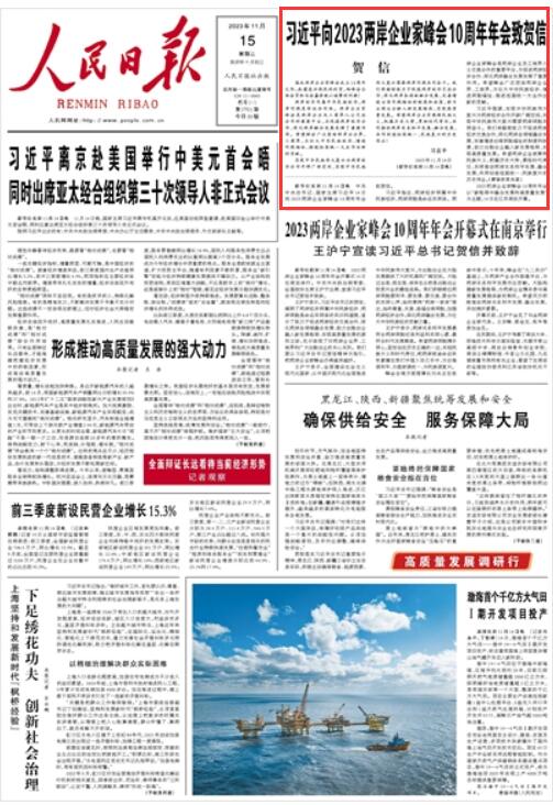 人民日報丨習近平向2023兩岸企業(yè)家峰會10周年年會致賀信