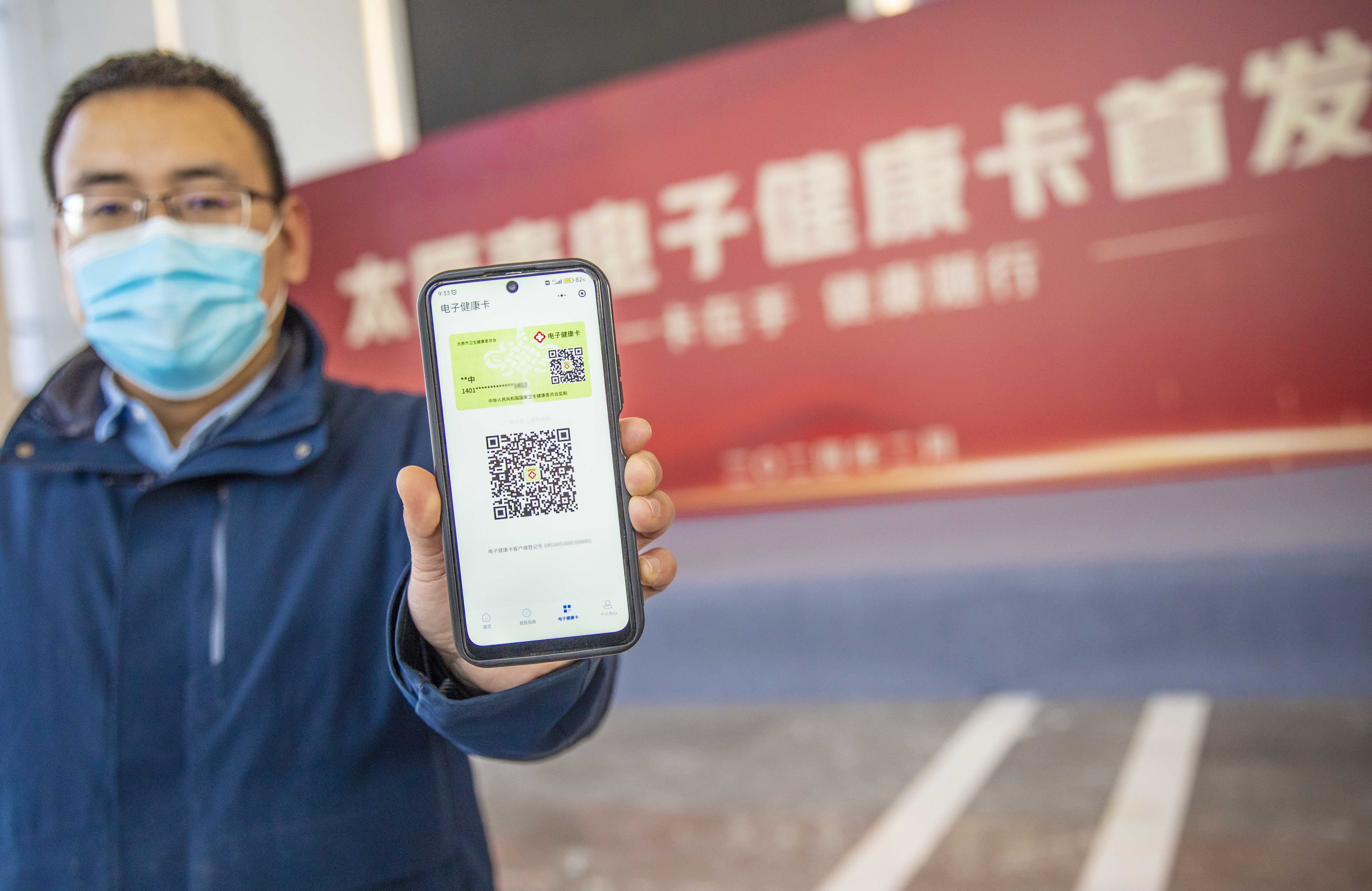 市民掃碼注冊(cè)太原市電子健康卡。人民網(wǎng)記者王帆攝