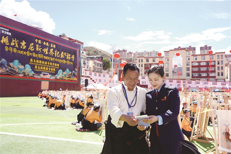 商報訊(通訊員 德西卓瑪 記者 芮怡星)當1138名畫師在西藏昌都市卡若區(qū)共同創(chuàng)造“最大規(guī)模唐卡課程”和“最大規(guī)模的唐卡同步繪制”兩項吉尼斯世界紀錄時,一抹“稅務(wù)藍”也悄然融入這片藝術(shù)的海洋。國家稅務(wù)總局昌都市稅務(wù)局“卓卓稅宣小分隊”穿梭其間,將精準的稅惠政策送至活動現(xiàn)場,為這場文化盛事增添了一抹特別的“稅務(wù)藍”。