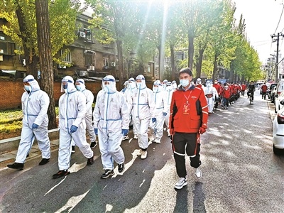 4月26日下午,100多名來(lái)自天津各片區(qū)的京東小哥來(lái)到北京,支援北京疫情較嚴(yán)重的區(qū)域,1999年出生的德帥是其中之一。到達(dá)北京后,德帥與其他9人住在光輝里小區(qū)附近的酒店,每天早上7點(diǎn),他們都會(huì)進(jìn)入光輝里小區(qū)為封控中的住戶送快遞、外賣。以“短程接駁+支援服務(wù)”的方式支援光輝里小區(qū),是“酒仙橋模式”的再一次實(shí)踐。