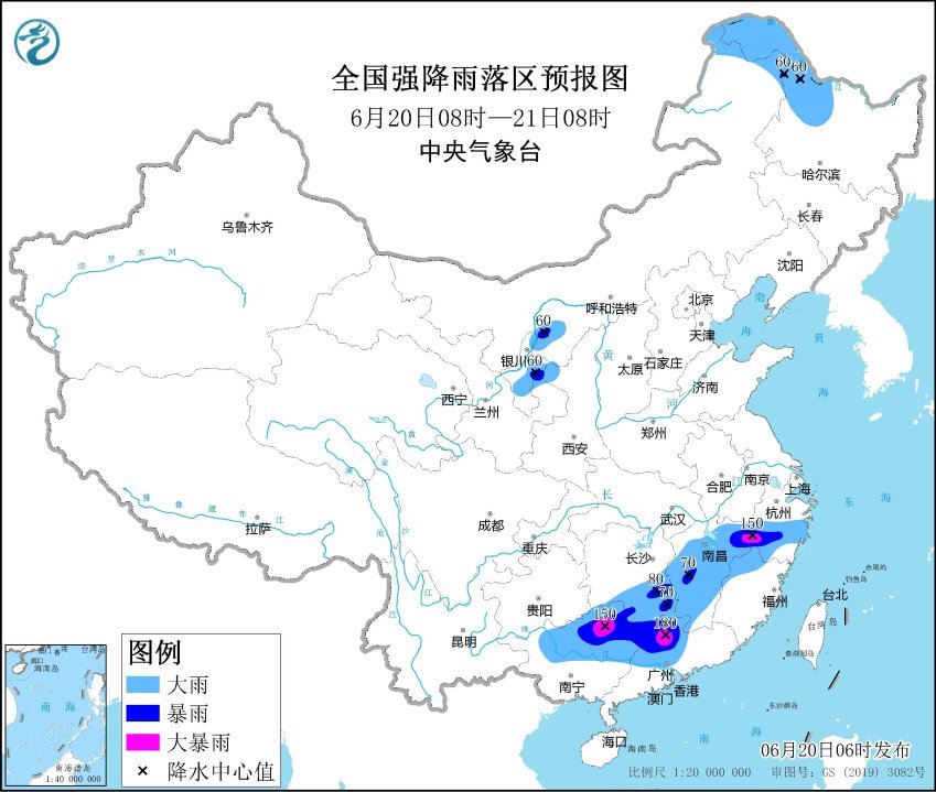 記者獲悉,中央氣象臺(tái)6月20日6時(shí)繼續(xù)發(fā)布暴雨黃色預(yù)警。預(yù)計(jì),6月20日8時(shí)至21日8時(shí),內(nèi)蒙古東北部、黑龍江西北部、寧夏北部、江西、湖南南部、浙江南部、華南北部等地部分地區(qū)有大到暴雨。其中,江西東北部、浙江西南部、廣西東北部、廣東西北部等地部分地區(qū)有大暴雨(100~180毫米)。