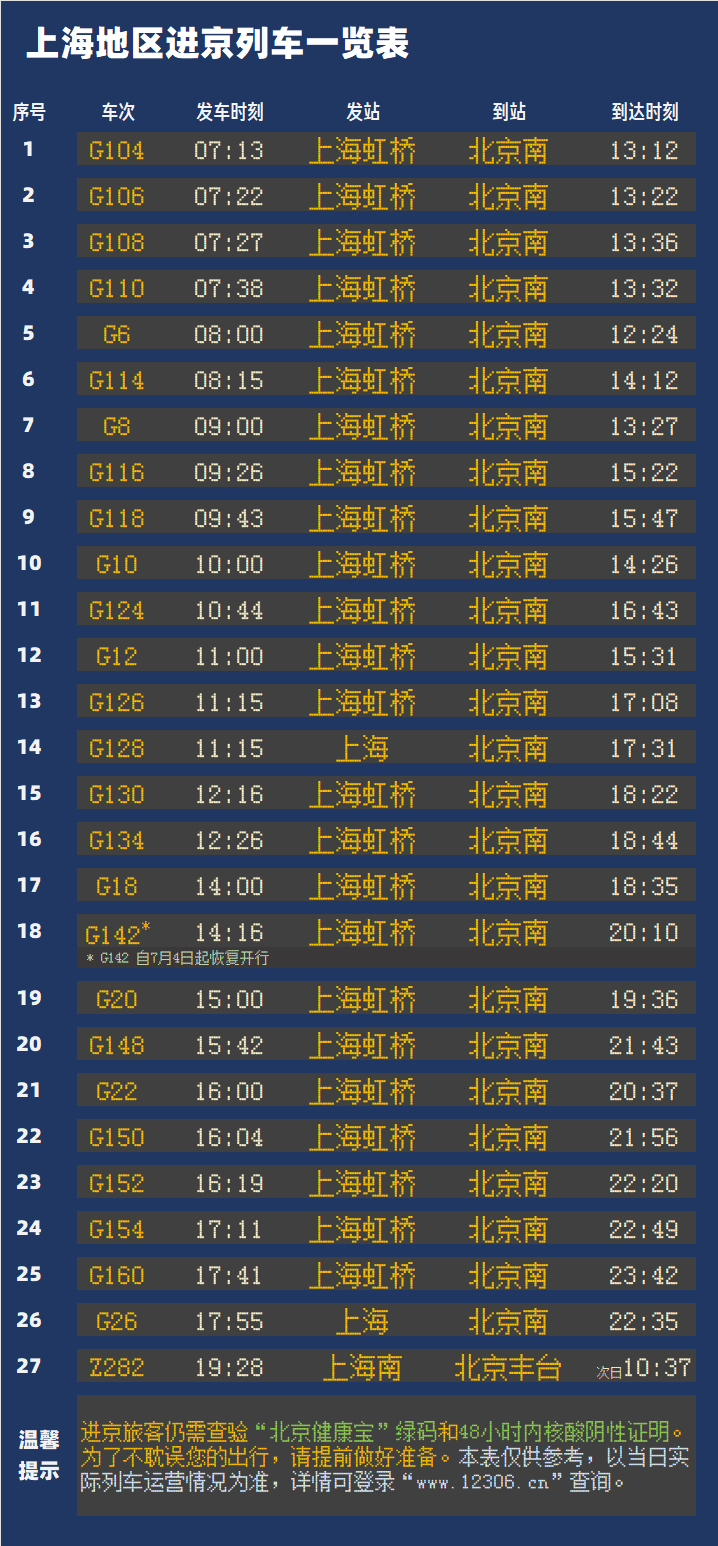 央廣網(wǎng)北京7月4日消息 據(jù)中國鐵路上海站消息,隨著上海疫情防控形勢持續(xù)向好,日前,鐵路部門逐步恢復開行上海地區(qū)進京列車。