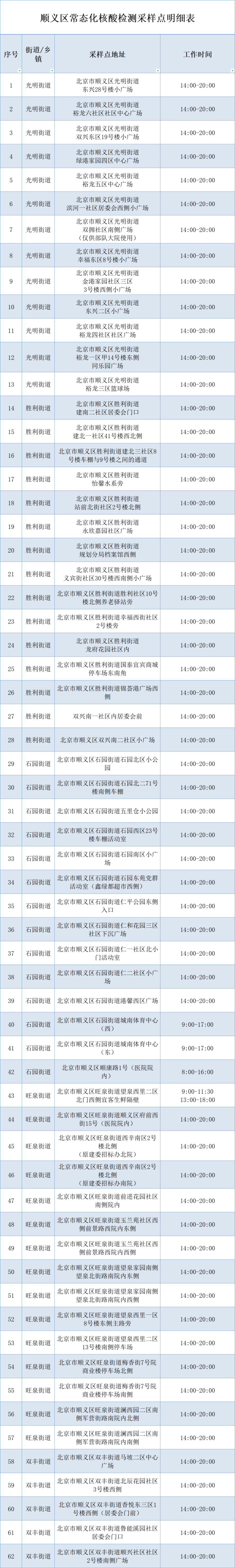 為了滿(mǎn)足市民就近檢測(cè)的需要,順義區(qū)公布了核酸采樣點(diǎn)位置和開(kāi)放時(shí)間。