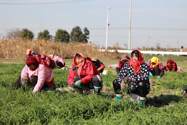江蘇興化:蔥農(nóng)栽苗忙 走出“集體致富”新模式