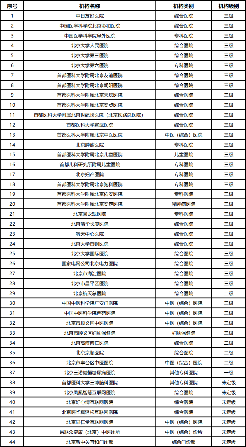 北京市公布互聯(lián)網(wǎng)醫(yī)院、開展互聯(lián)網(wǎng)診療服務(wù)醫(yī)療機構(gòu)名單