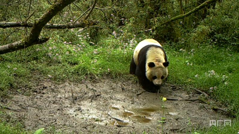 大熊貓現(xiàn)身“網(wǎng)紅水塘”(央廣網(wǎng)發(fā) 雅安融媒供圖)