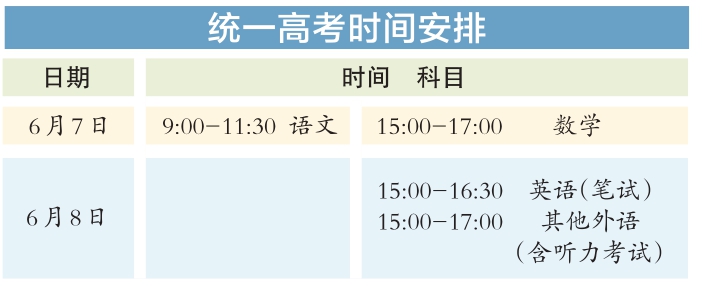 今年統(tǒng)一高考考試科目為語文、數(shù)學(xué)、外語3門,滿分均為150分。其中,英語聽說考試滿分50分,其他外語(非英語)聽力考試滿分30分,兩次聽說(聽力)考試的最高成績與其他部分試題成績一同組成外語科目成績計入高考總分。學(xué)考等級考科目為思想政治、歷史、地理、物理、化學(xué)、生物6門,由考生自主選擇3門參加考試,每科目滿分100分。參加本科招生錄取的考生總成績由3門統(tǒng)一高考成績和考生選考的3門學(xué)考等級考成績構(gòu)成,總成績滿分值為750分。
